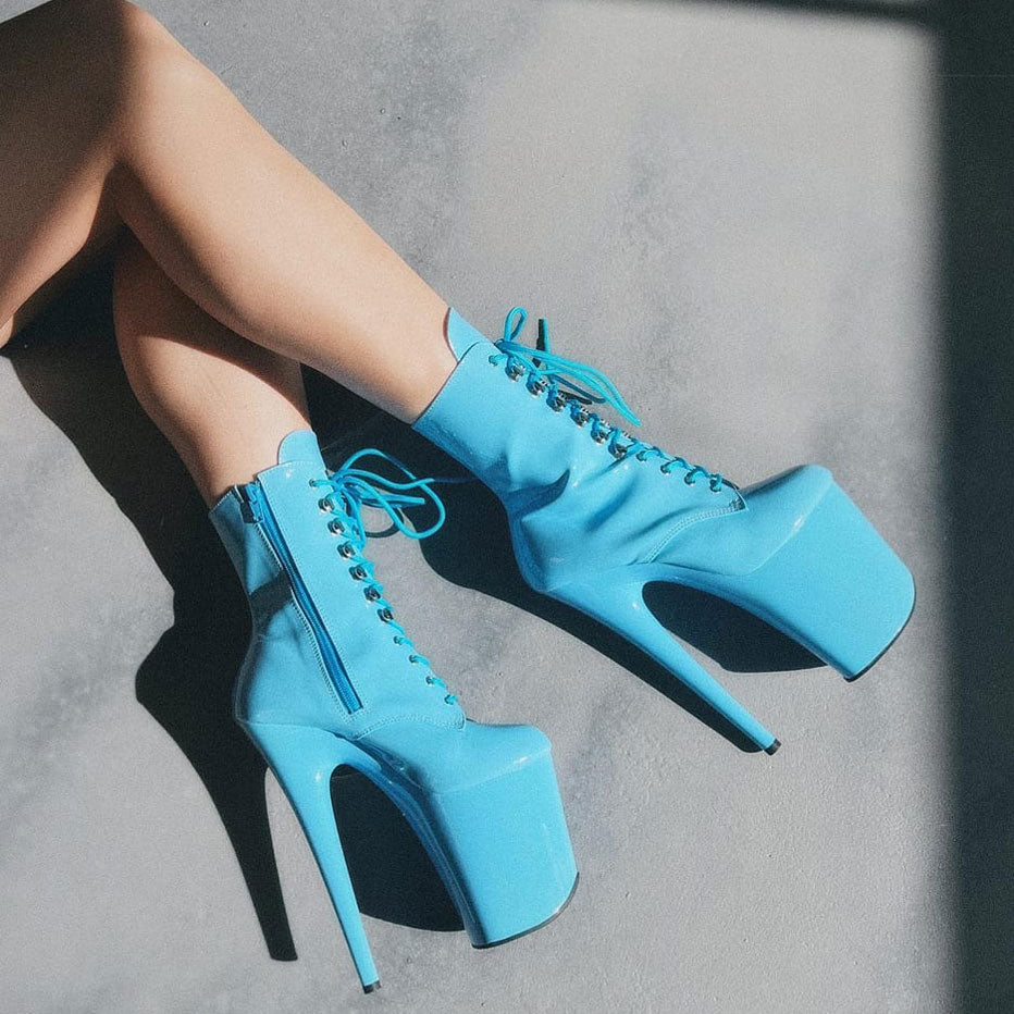 Modeller med plateau-hæl fås generelt i 6", 7" eller 8". Modeller uden pleateau fås også med lavere hæl. Generelt anbefaler vi ankelstøvler med 6" og plateau til begyndere.
