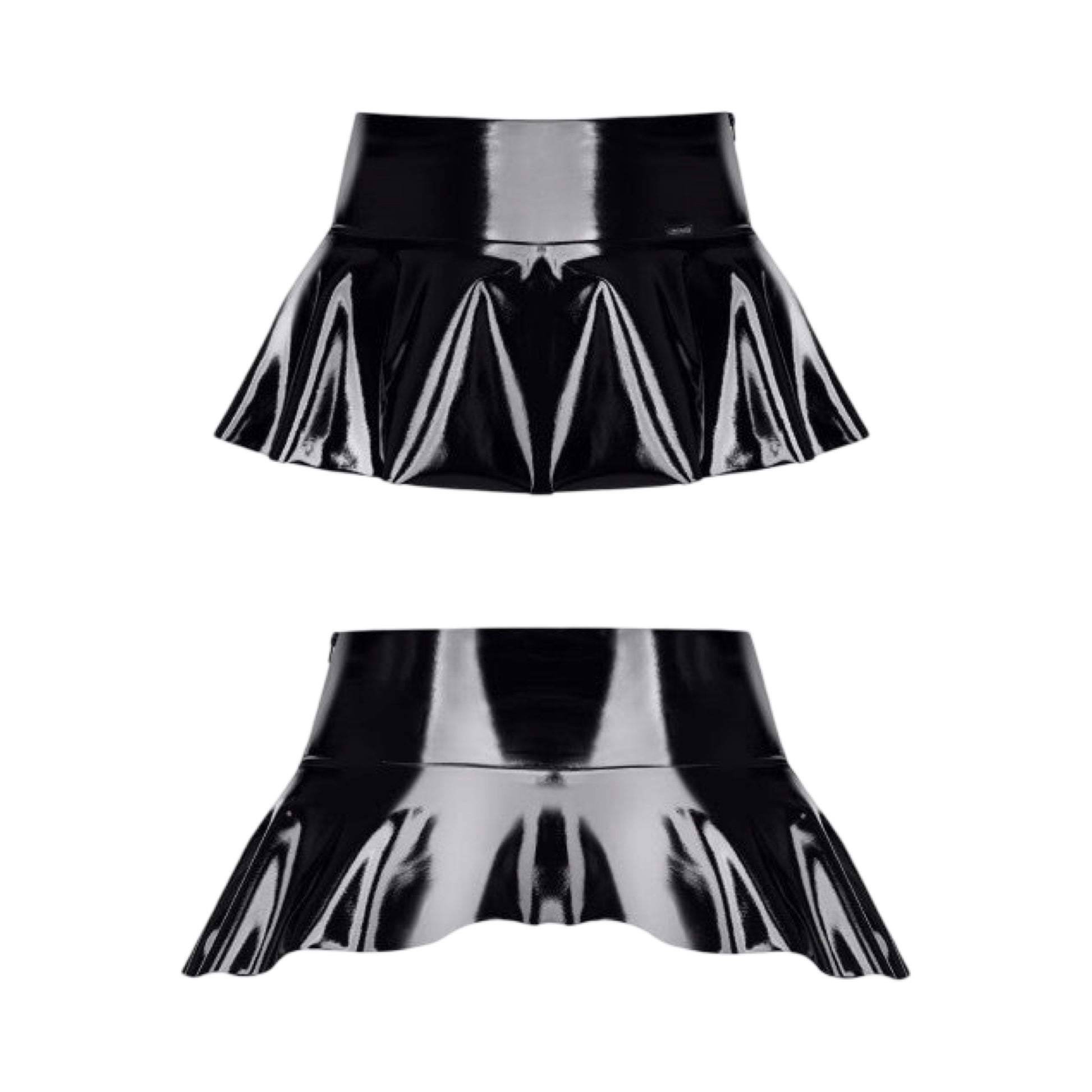 Dette lak miniskirt er fremstillet af høj kvalitet vinyl med høj glas. Dets form fremhæver dine hofter og formindsker herved din taljestørrelse.