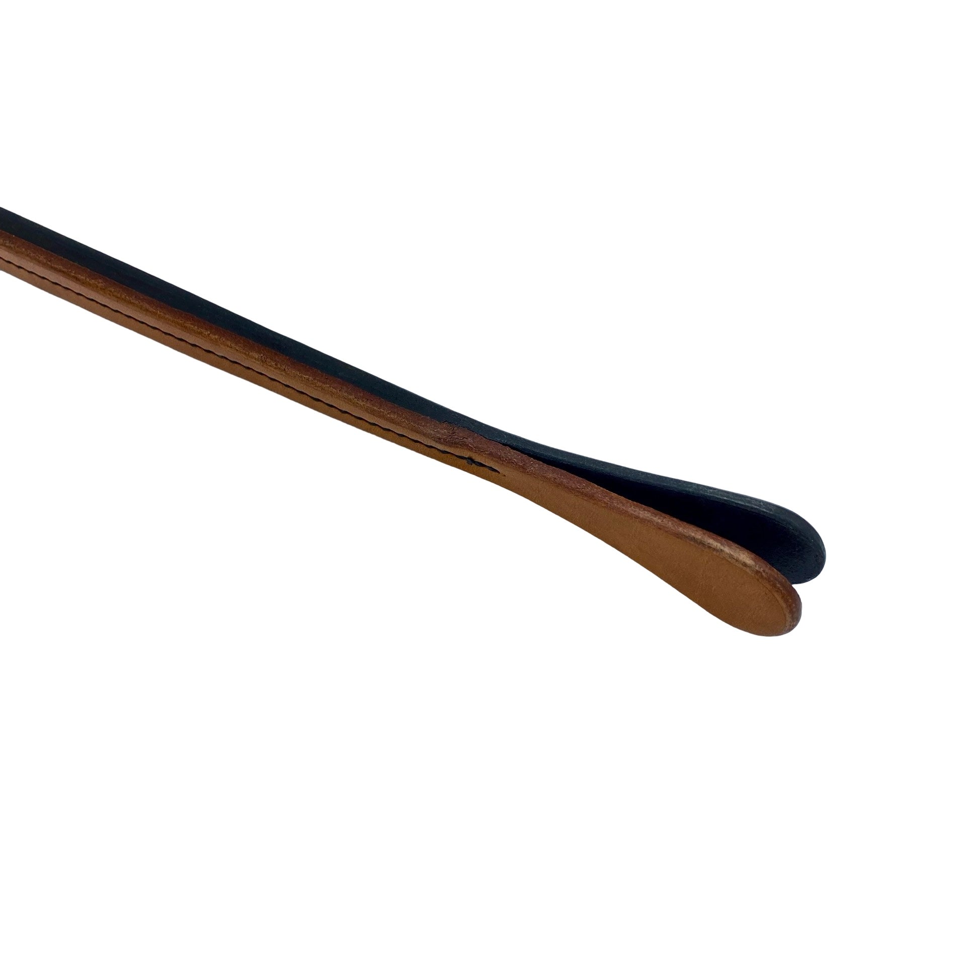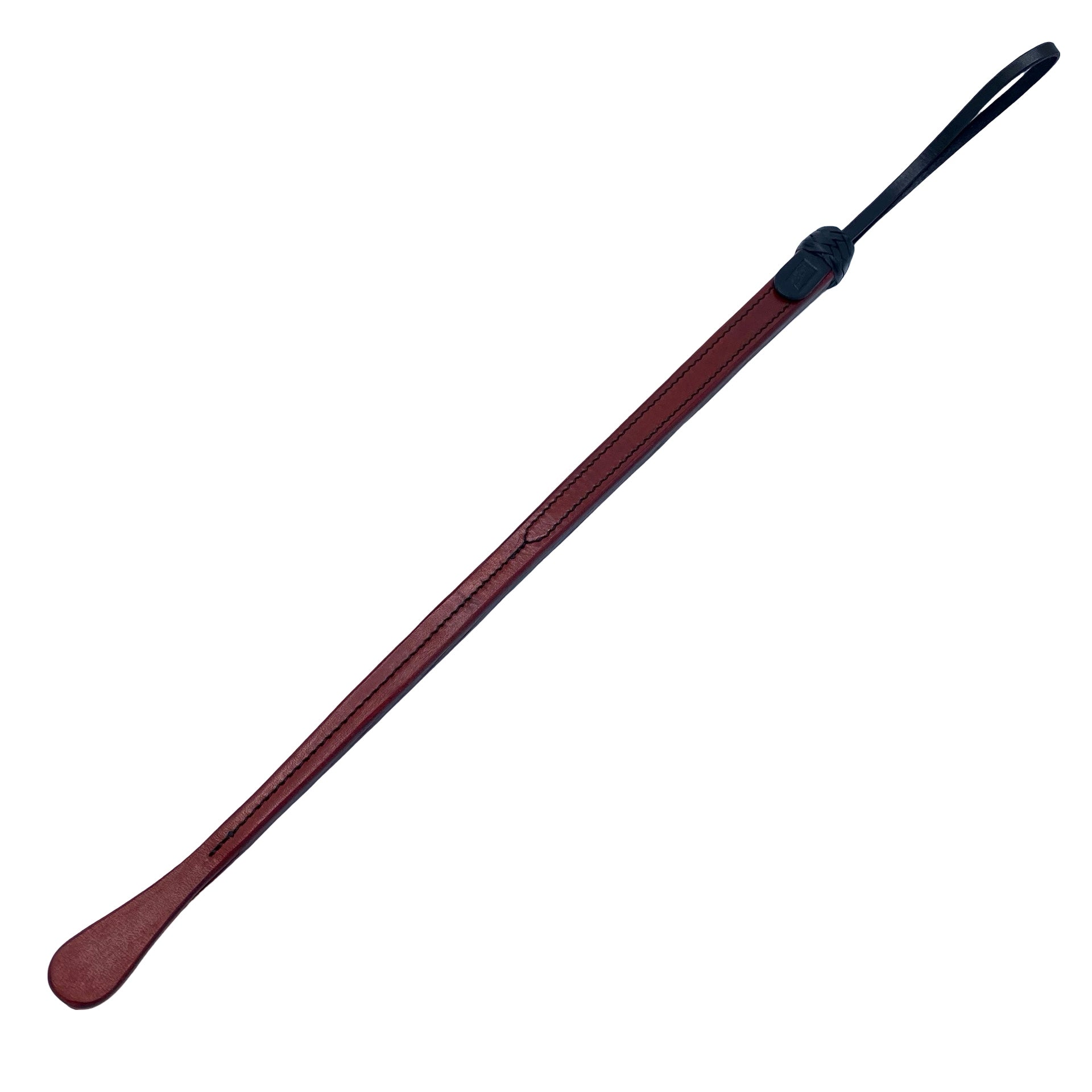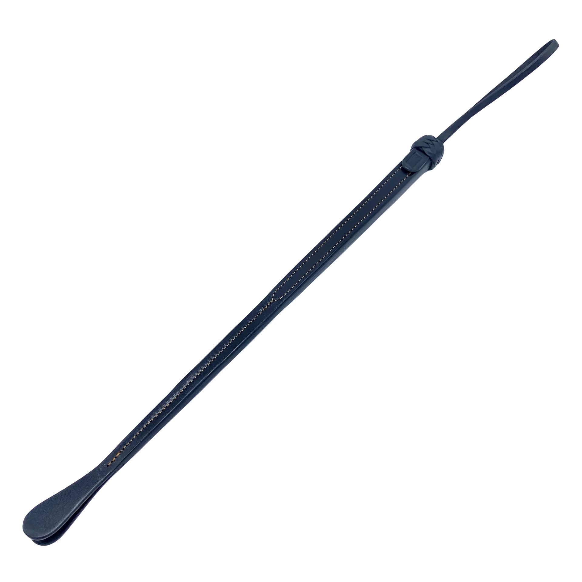 Denne elegante pisk er forgængeren til nutidens ridepisk. Modsat nyere tids ridepiske, som typisk indeholder glasfiberindlæg, er disse piske fremstillet ved at sy flere lag læder sammen. Dette skaber en kombination af fasthed og elasticitet, der gør dem utroligt effektive! Det, at pisken er af 100% læder og fri for syntetiske komponenter gør den kun endnu mere tiltalende. Det lange greb og den korte snert gør den velegnet til fast markering af specifikke områder... Desuden er denne lædertype af en slags, der bliver blødere og mere fleksibel med tiden, modsat ved læder af en lavere kvalitet, der har det med, at hærde og sprække. En ægte kvalitetspisk.