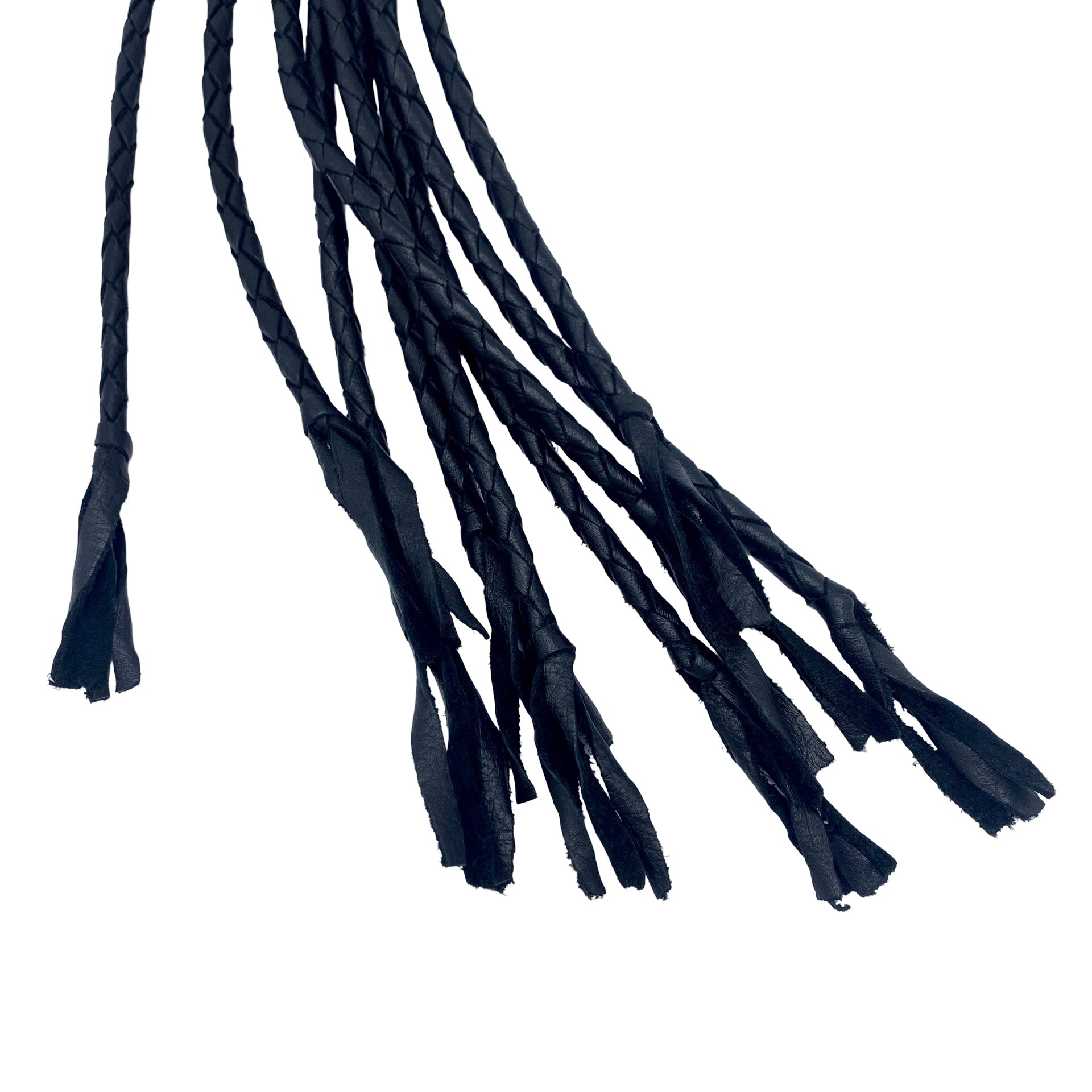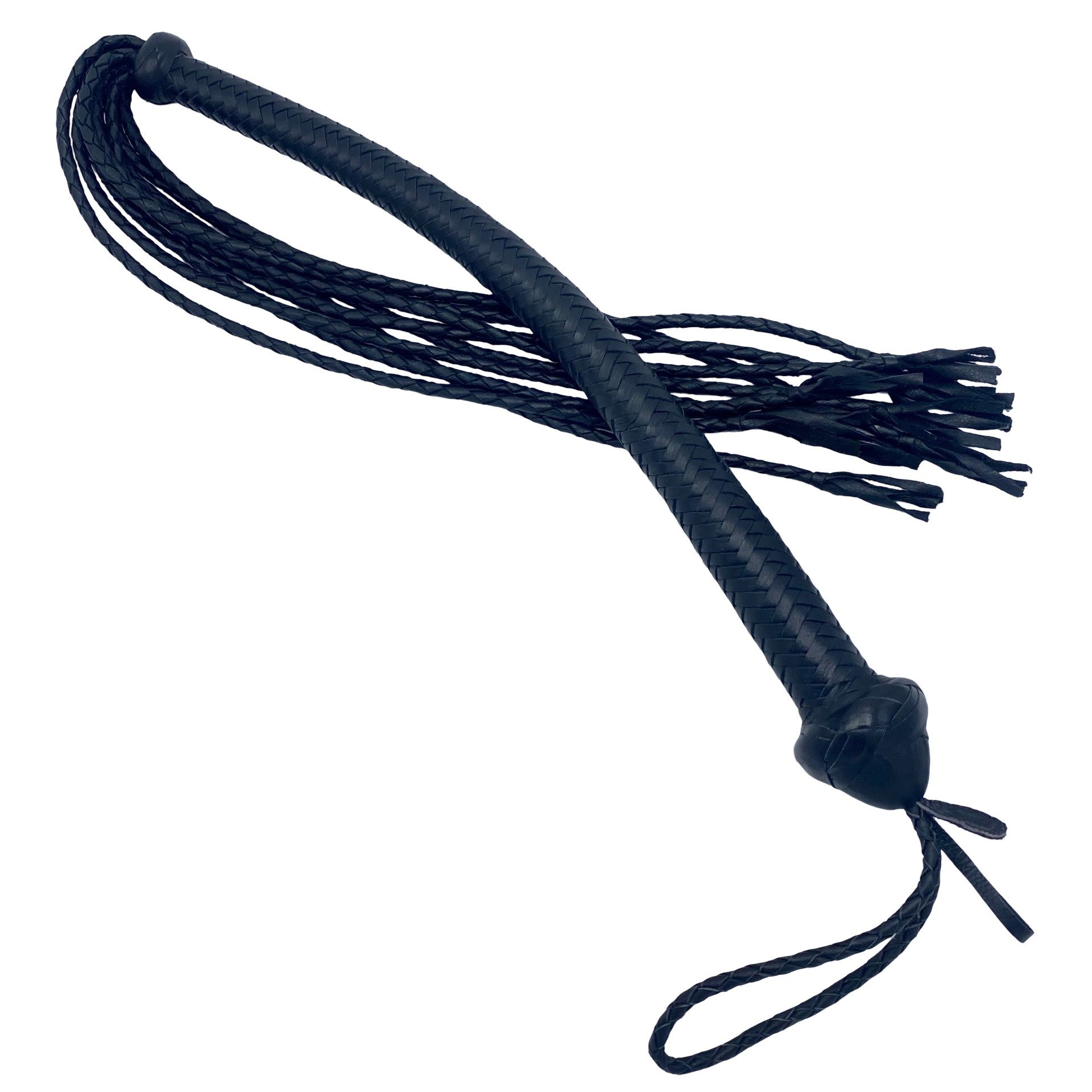 Det korte stive håndtage går nærmest umærkeligt over i en fleksibel del, som ved basen kan minde lidt om singletail. Længere uden fordeler pisken sig til ni rund-flettede snore, der hver ender en en afslutning med fire fine bløde skind snerter.