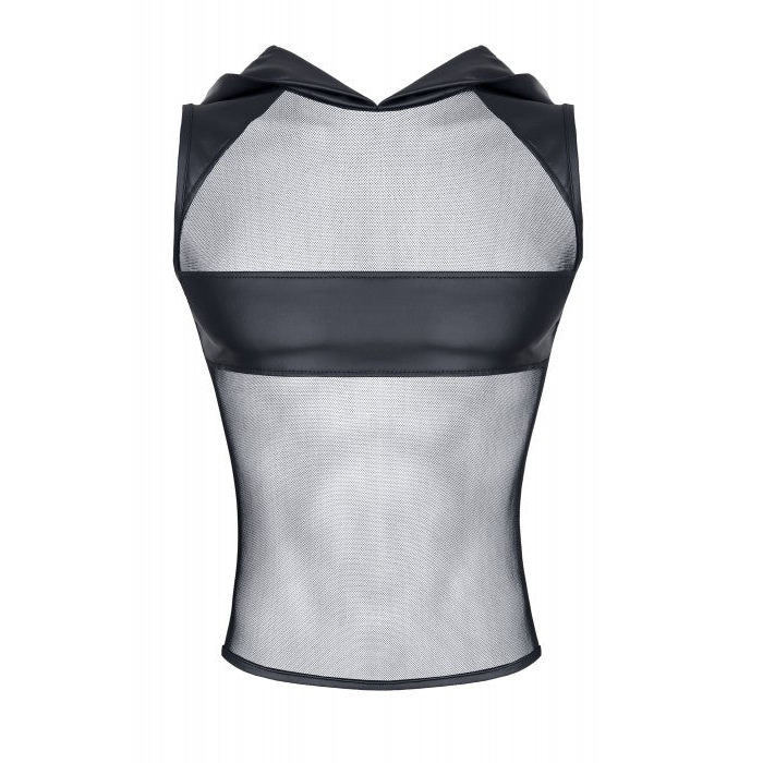 Denne meshtop med hætte er perfekt til dig der godt kan lide et maskulint look og lidt rå attitude.