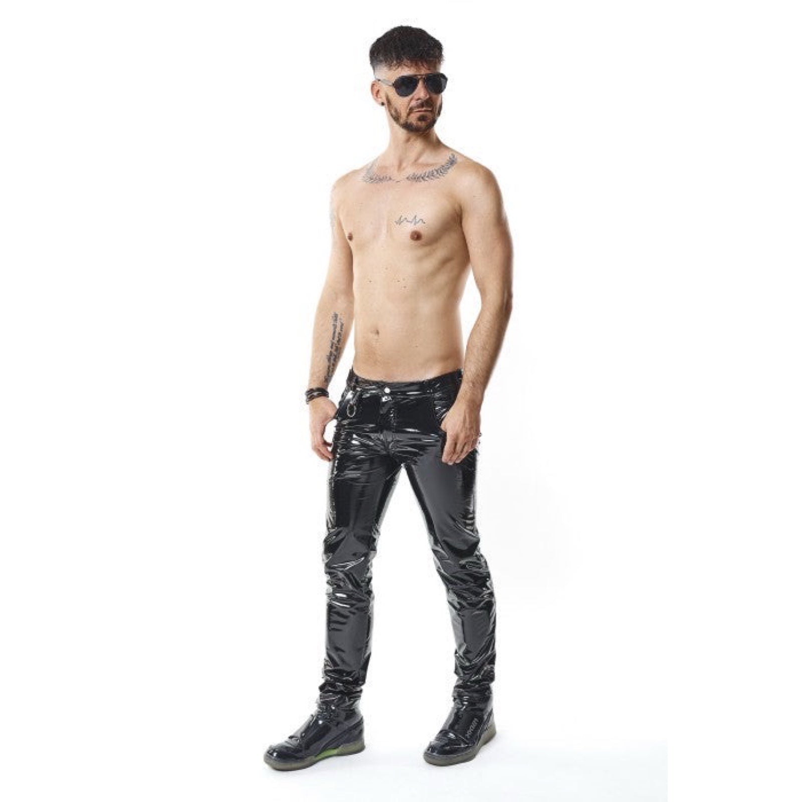 Disse fede bukser fra Regnes Fetish Planet er fremstillet i elastisk PVC og ser både fantastiske ud og er super praktiske. Snittet fremhæver dine ballers form, og du får hele fire lommer at nyde af når du skal til fest!
