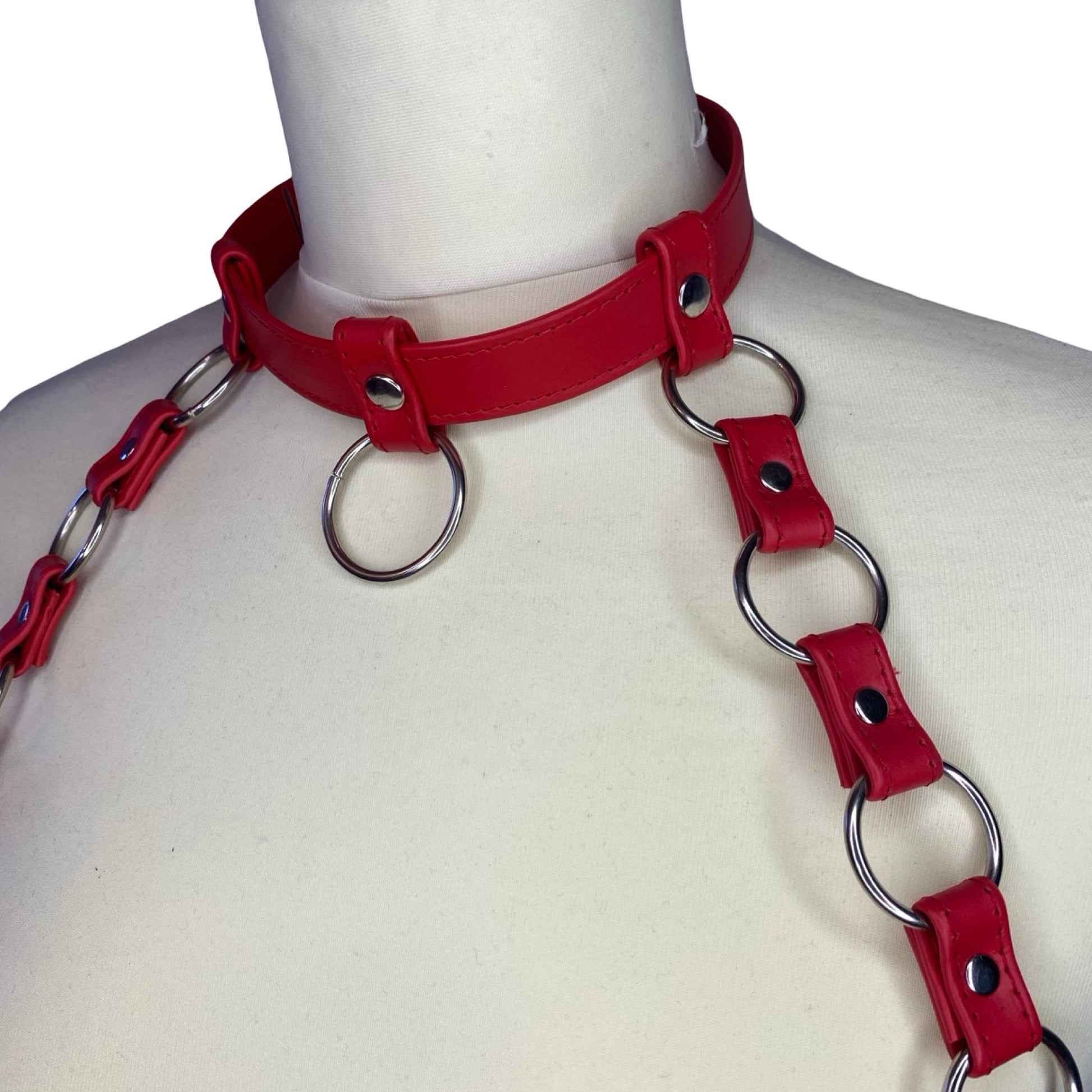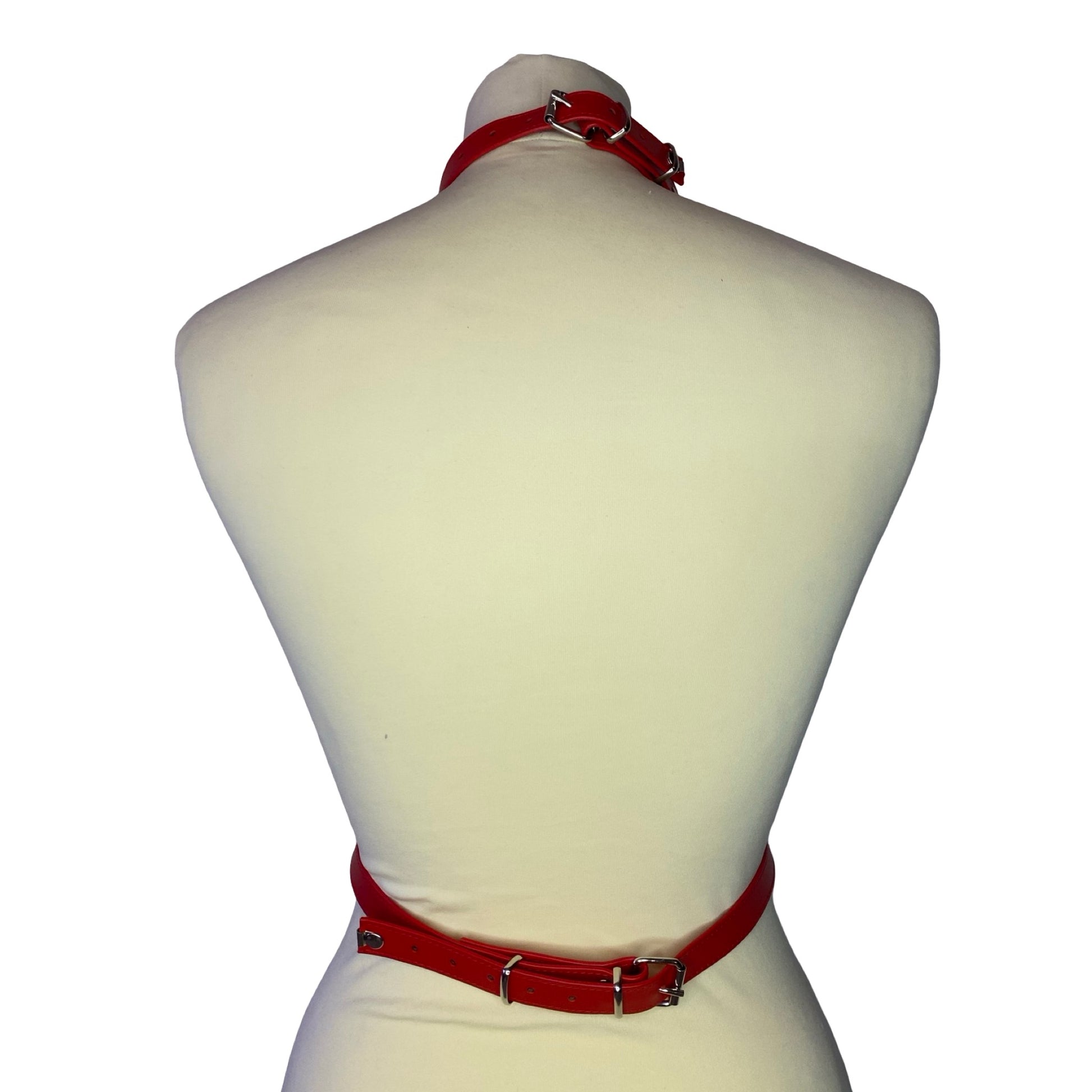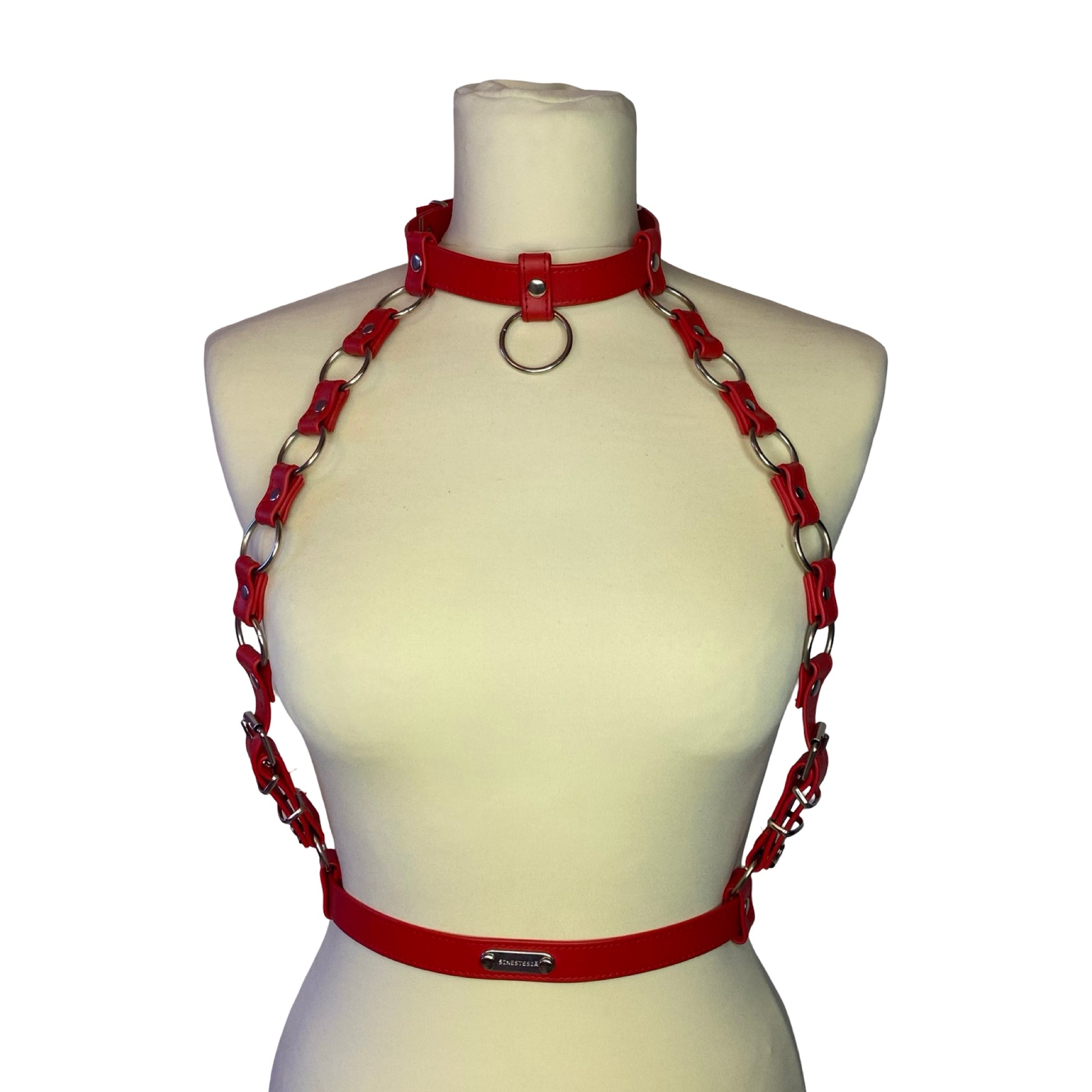 Rose Harness er skabt til dig, der elsker et look, der både er blidt og powerfuldt på samme tid. Håndlavet i Spanien og designet i en smuk rød farve, forener det et feminint udtryk med et submissivt twist.